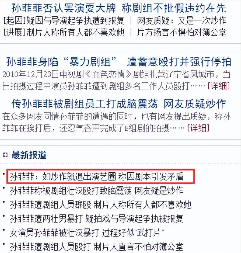 当年孙菲菲称剧组所有人都欺负她,自己孤立无援,并未撒谎。她还表示:“如果我在炒作的话,就退圈。”