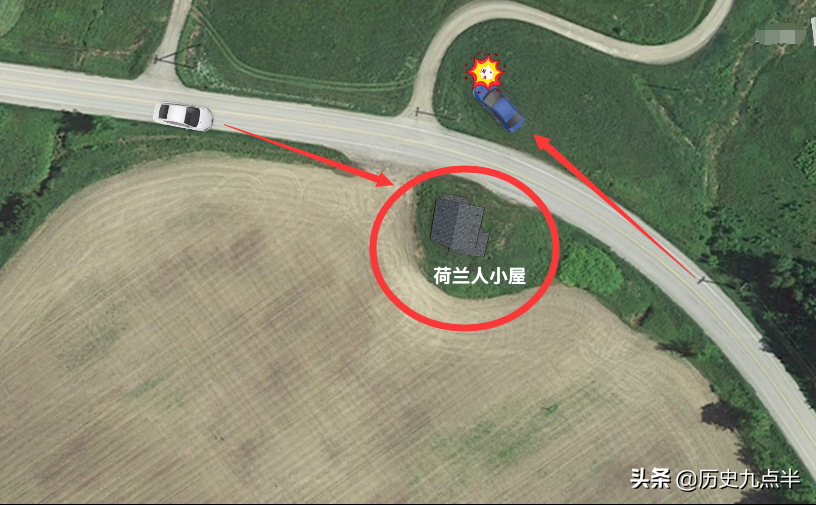 咱们之前说过,当晚梅特兰从黑灯笼旅馆下班,而后开车经过荷兰人小屋失踪,荷兰人小屋在黑灯笼旅馆的东面,也就是说梅特兰是开车自西向东行驶的。而在车祸现场,梅特兰的车则是车尾撞上荷兰人小屋,这是极其不合理的。