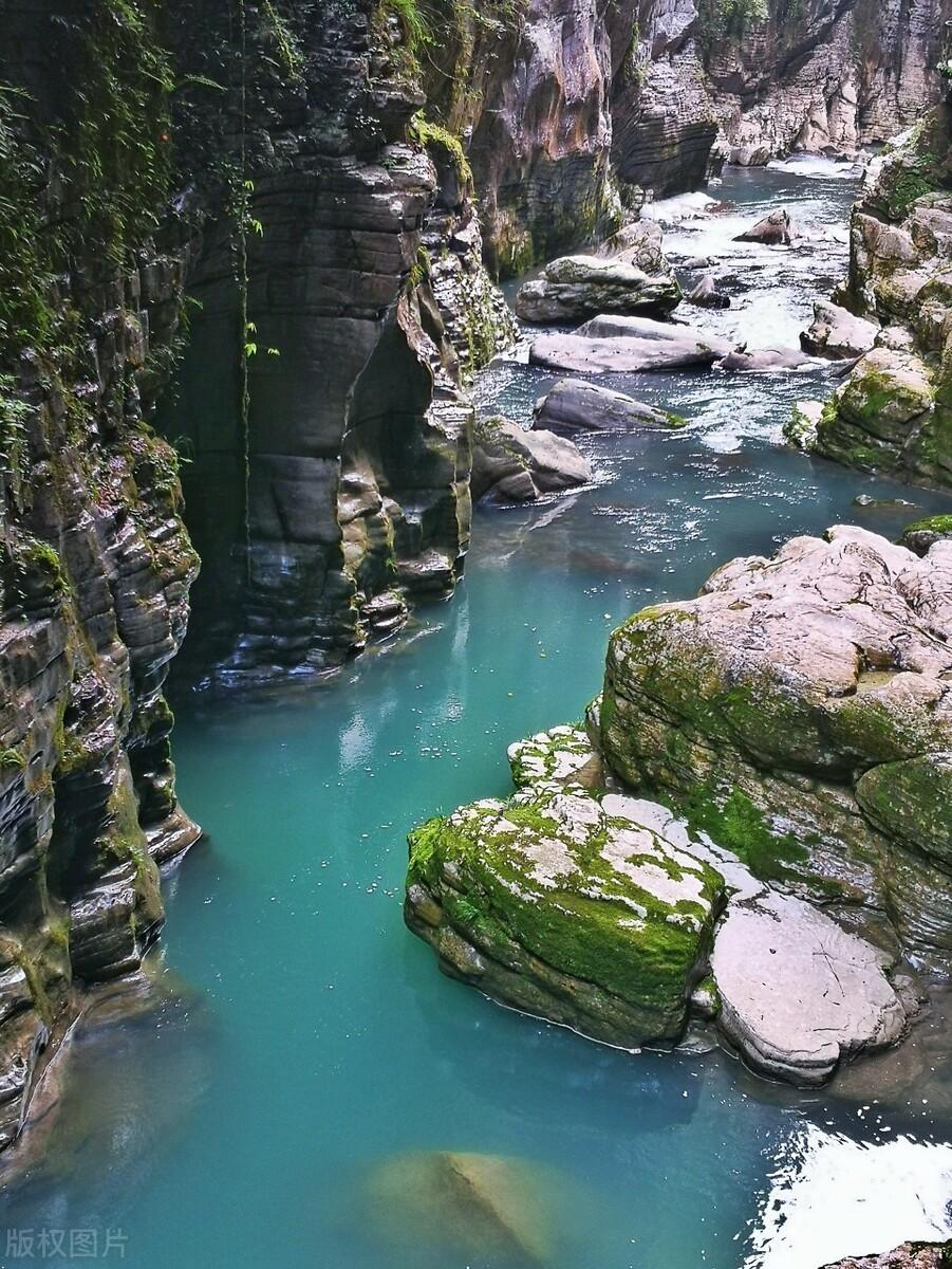 恩施地心谷,位于建始县,这里幽深峡谷,绝壁古洞,谷底一条清澈的小溪急流奔涌,如翡翠般的深潭,其景色犹如回到远古的侏更罗纪时代,是一个隐藏在悬崖峭壁中的世外桃源。